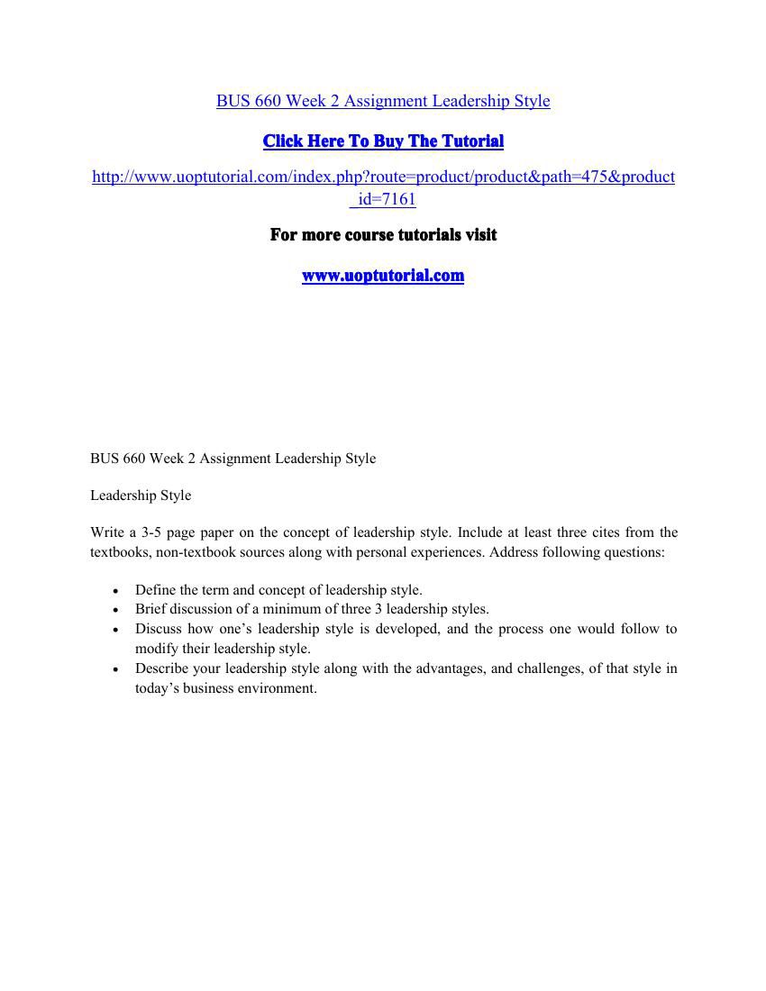 Ldr Week 3 Individual Assignment Leadership Style Paper : Describe Your Leadership Style By Citing Examples From Your Work Experience.