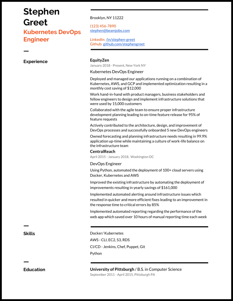 Devops Resume In 2020 Resume Examples Resume Good Resume Examples . Impressive Devops Engineer Resumes Made Easy!