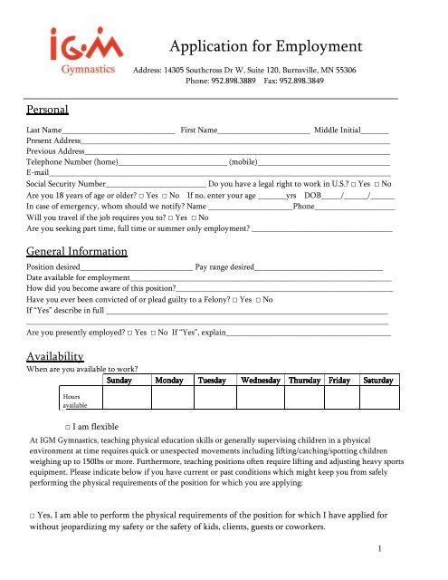 Igm Job Application Igm Gymnastics . Availability is a topic that is not typically explained by resume guides.