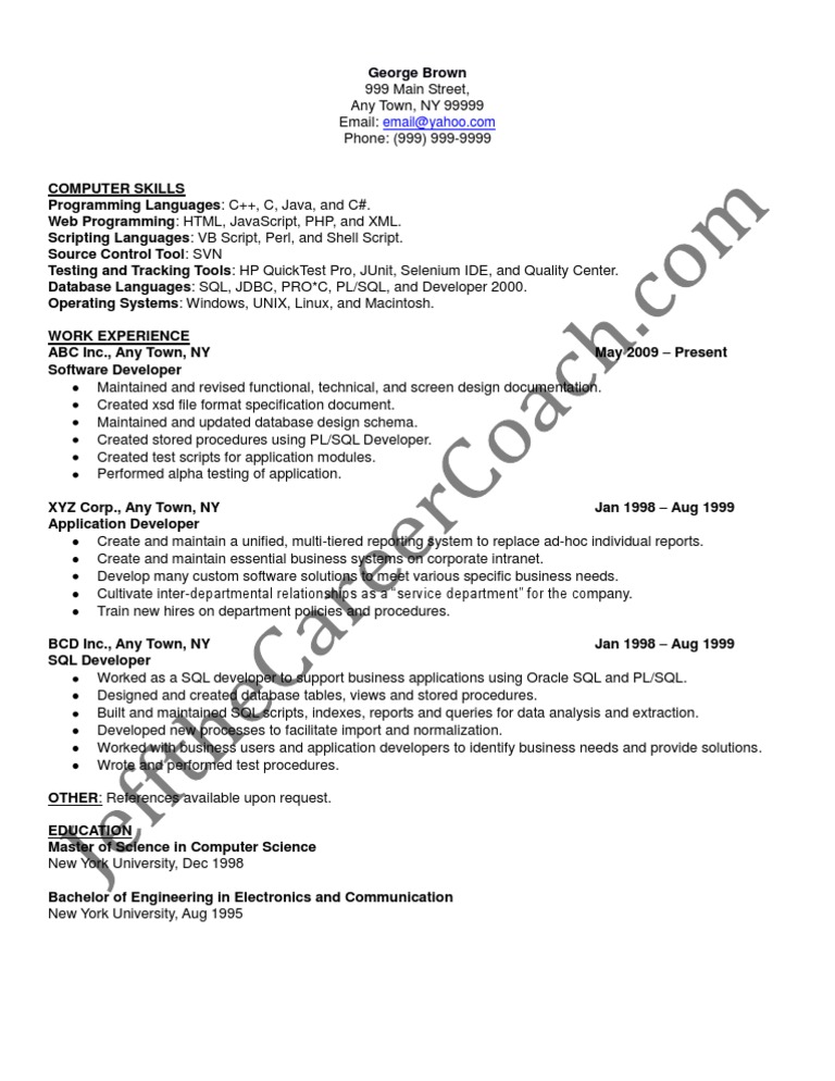 Resume Templates Pl Sql Programmer Sample Resume - That's What The Next Of Our Database Developer Resume.