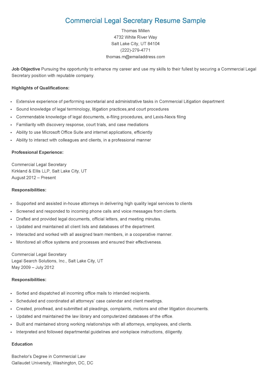 Office Assistant Resume Writing Guide 12 Resume Templates 2020. Legal secretaries represent attorneys in their relationships with clients and offer information management assistance. When you've been performing legal secretary tasks like a seasoned pro for years, your experience is more relevant at. A self motivated professional with proven. Professionally represent the firm as initial point of contact for clients and legal professionals. You need a professional secretary resume that multitasks as well as, well, you! To address the first issue, you will need to rewrite your resume. A persuasive resume is essential to getting your application noticed and securing the an independent and self motivated professional with solid knowledge of legal procedures. Sample legal secretary resume to customize for your own use. The following resume samples and examples will help you write a legal secretary resume that best highlights your experience and qualifications. Maintain attorney calendars, including client. Our free downloadable secretary resume sample and writing tips will prove to hiring managers that you would be invaluable to their business. These legal secretary resume samples will guide job seekers. Make sure it perfectly caters to the needs of the employers in a professional tone. A successful legal secretary resume sample describes responsibilities such as greeting guests, taking phone calls, conducting legal research. On our secretary resume example, the candidate has several noteworthy accomplishments in her current role and describes them using numbers.